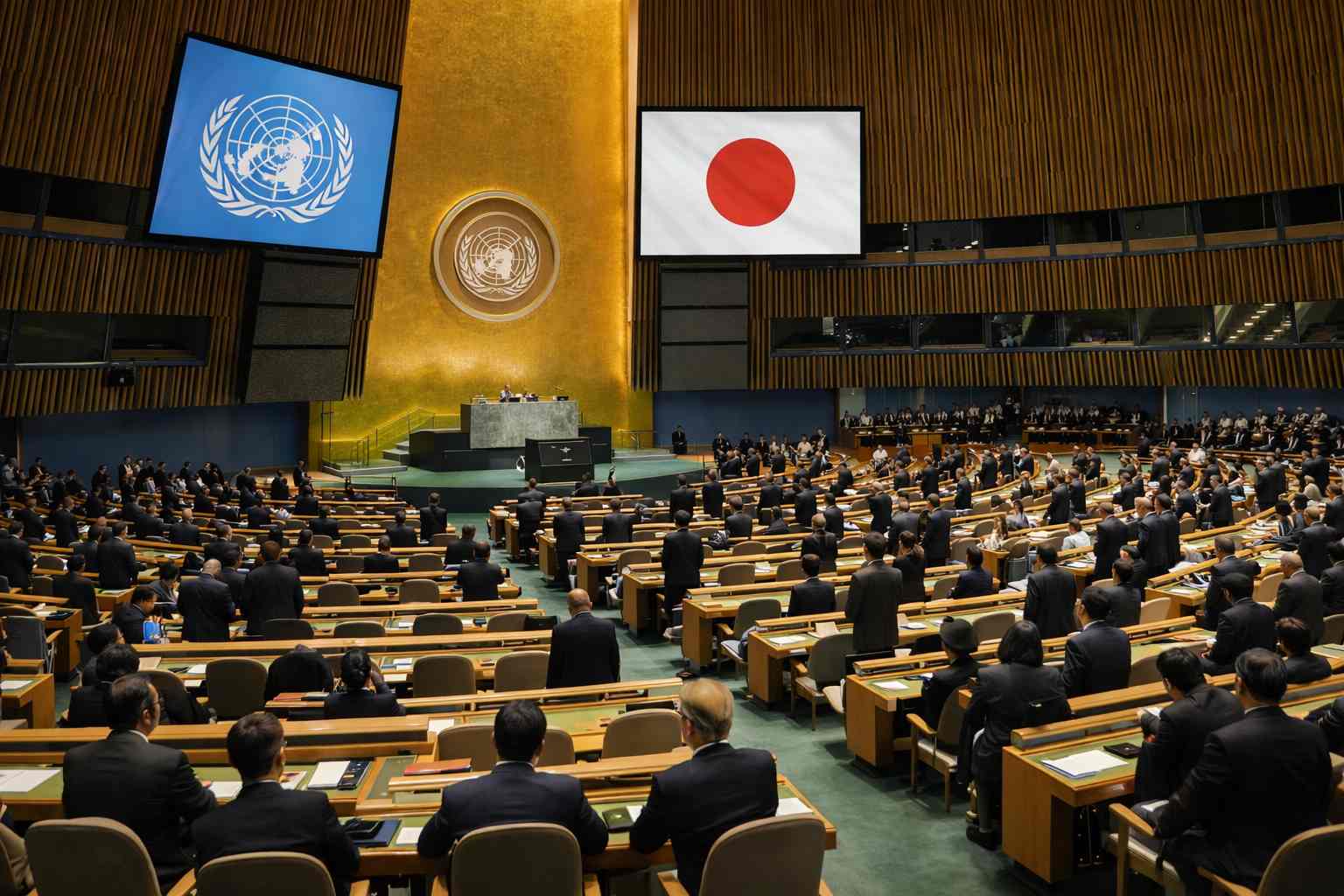 国連本部総会議場では、日本が重大な発表をするということで議場はぎっしり埋まっていた。