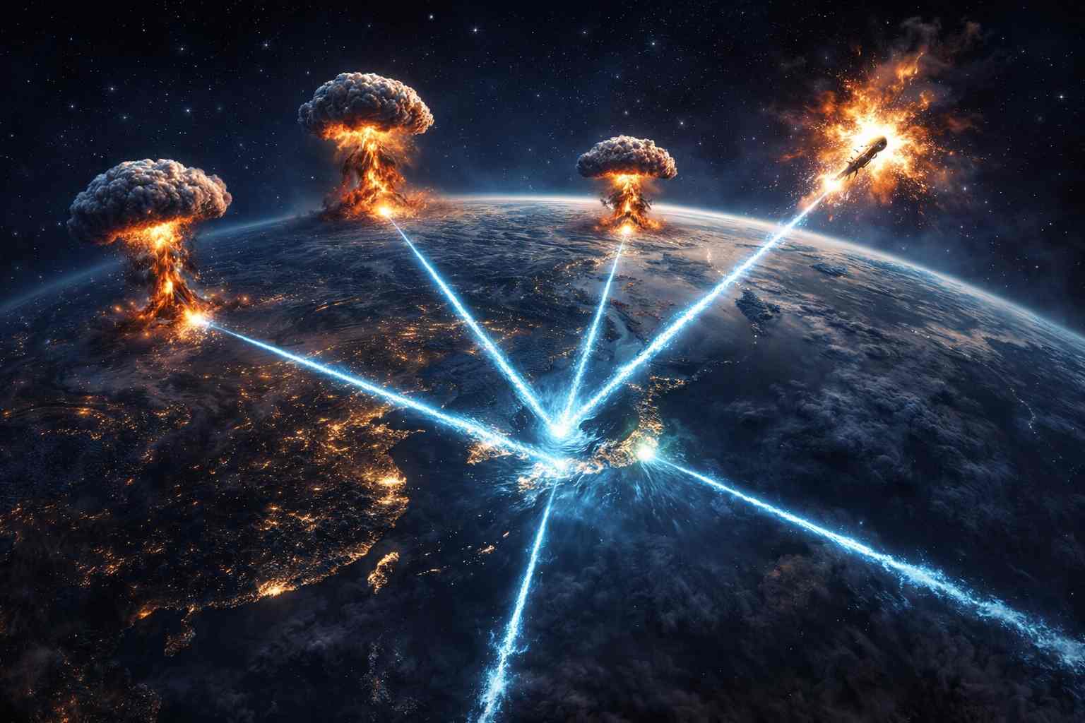 これらの新技術によって、核保有国が保管している核兵器、また、ミサイルが発射された直後にも、その位置を瞬時に把握し、核弾頭を自爆させることを可能にしたのです。これまでの迎撃ミサイルがピンポイントで標的を狙い撃ちしなければならない不確実性を完全に克服したのです」